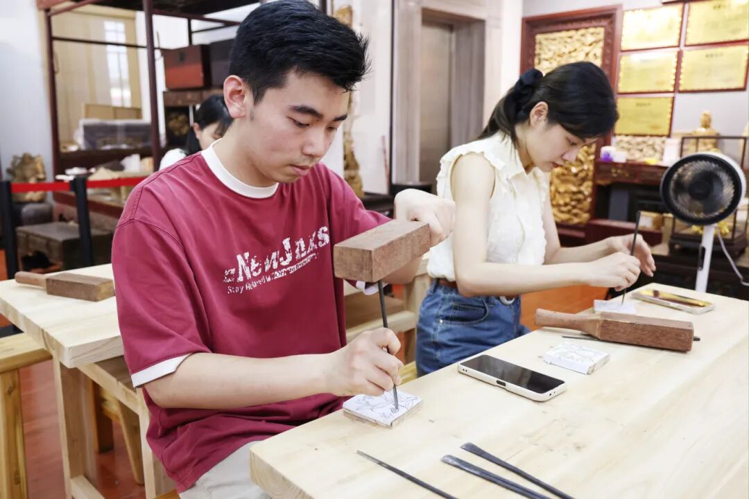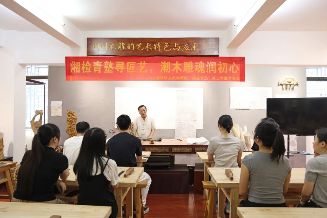 实操环节中,青年干警分组开展创作,用凿刀刻出轮廓,用刻刀雕出线条。从小心翼翼到逐渐沉浸,干警们在一凿一刻中体味着潮州木雕的独特魅力,更在实践中领悟到“如雕如琢”的工匠精神和“守正维新”的时代精神。