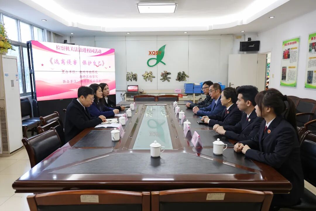 市检察院和我院检察官以法治副校长的身份走进湘桥区实验学校,就检察机关如何更好地开展法治副校长工作、如何加强未成年人安全教育和保护等方面与该校参会人员进行了深入交流。双方一致表示将凝聚检校合力,共同为学生的成长成才创造良好的法治化校园环境。