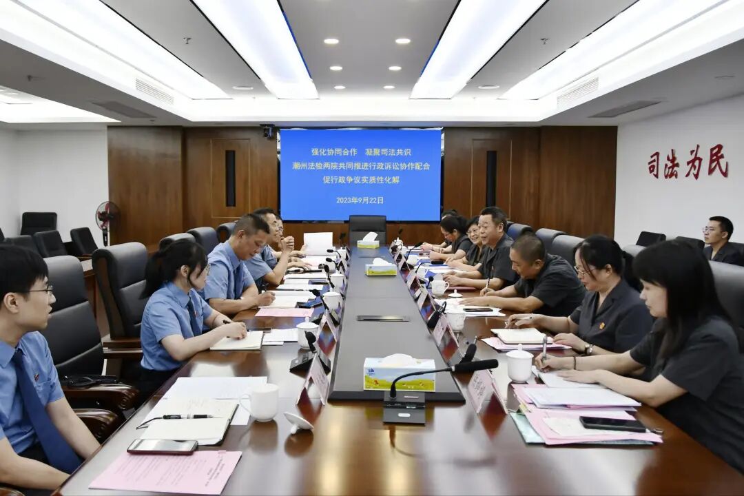 为加强行政审判和行政检察工作的协作配合,提高行政案件办理质效,促进公正司法和行政争议实质性化解,9月22日,市检察院、湘桥区检察院的行政检察部门和市中级法院、湘桥区法院的行政审判部门共同召开行政审判与行政检察联席会。